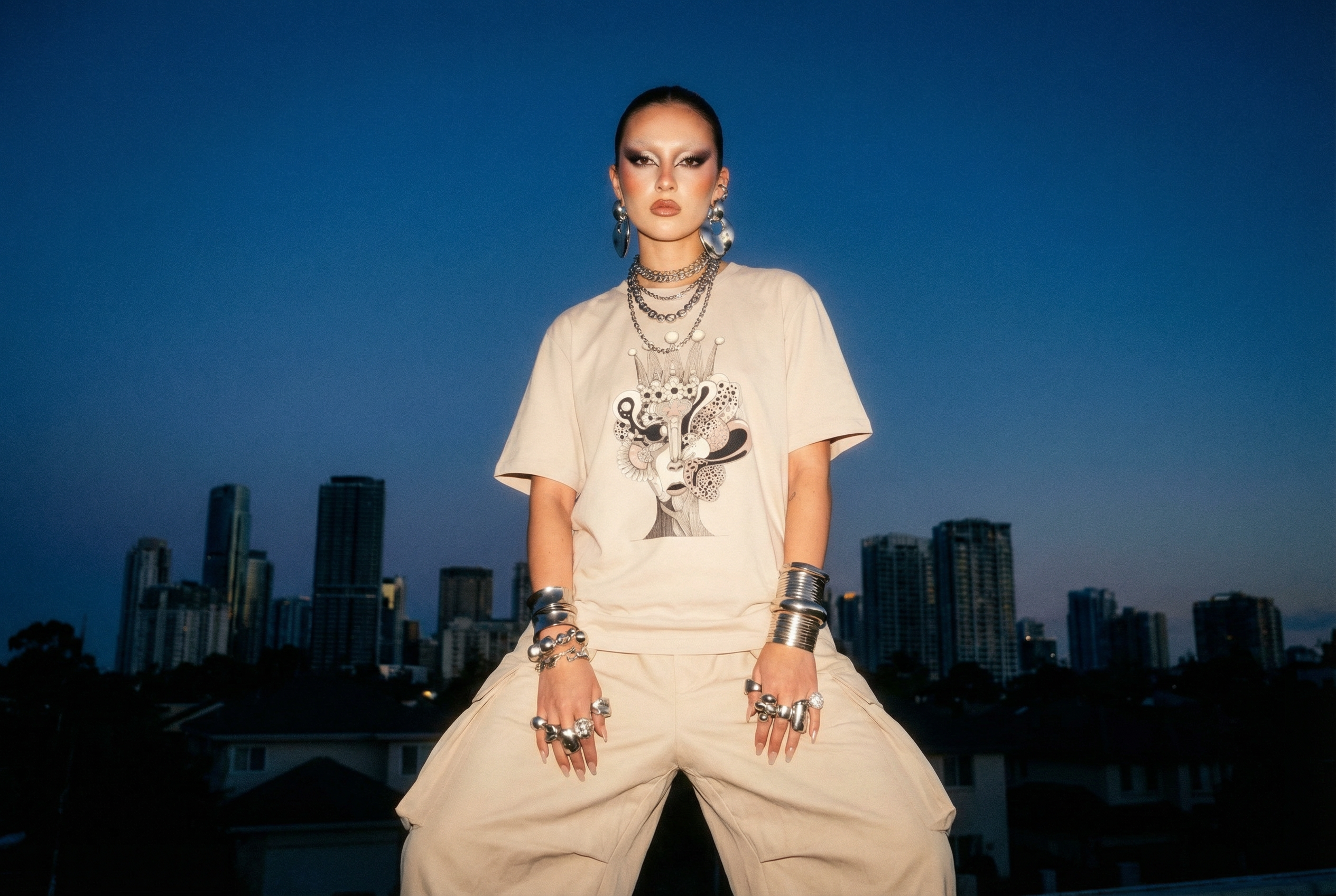 Crowned Scream Graphic Tee — Red Halo Portrait T-Shirt
